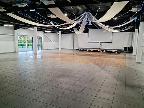 La salle dispose d’une piste de danse spacieuse, d’une sonorisation complète, d’un vidéoprojecteur avec grand écran (4 m x 3 m) et d’un éclairage adapté pour créer une ambiance festive et conviviale.